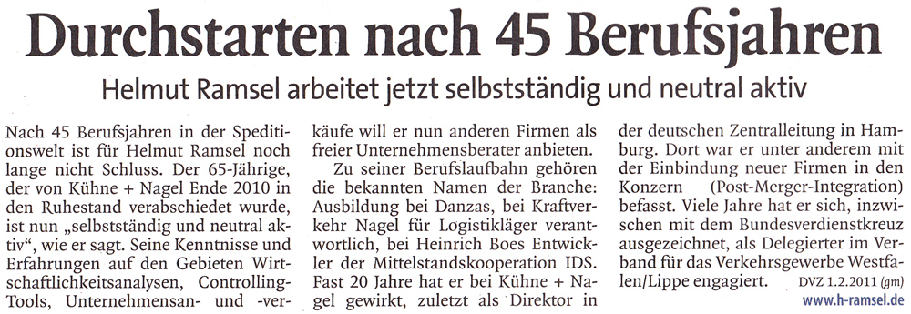 Artikel in der DVZ "Durchstarten nach 45 Berufsjahren" (...mehr)